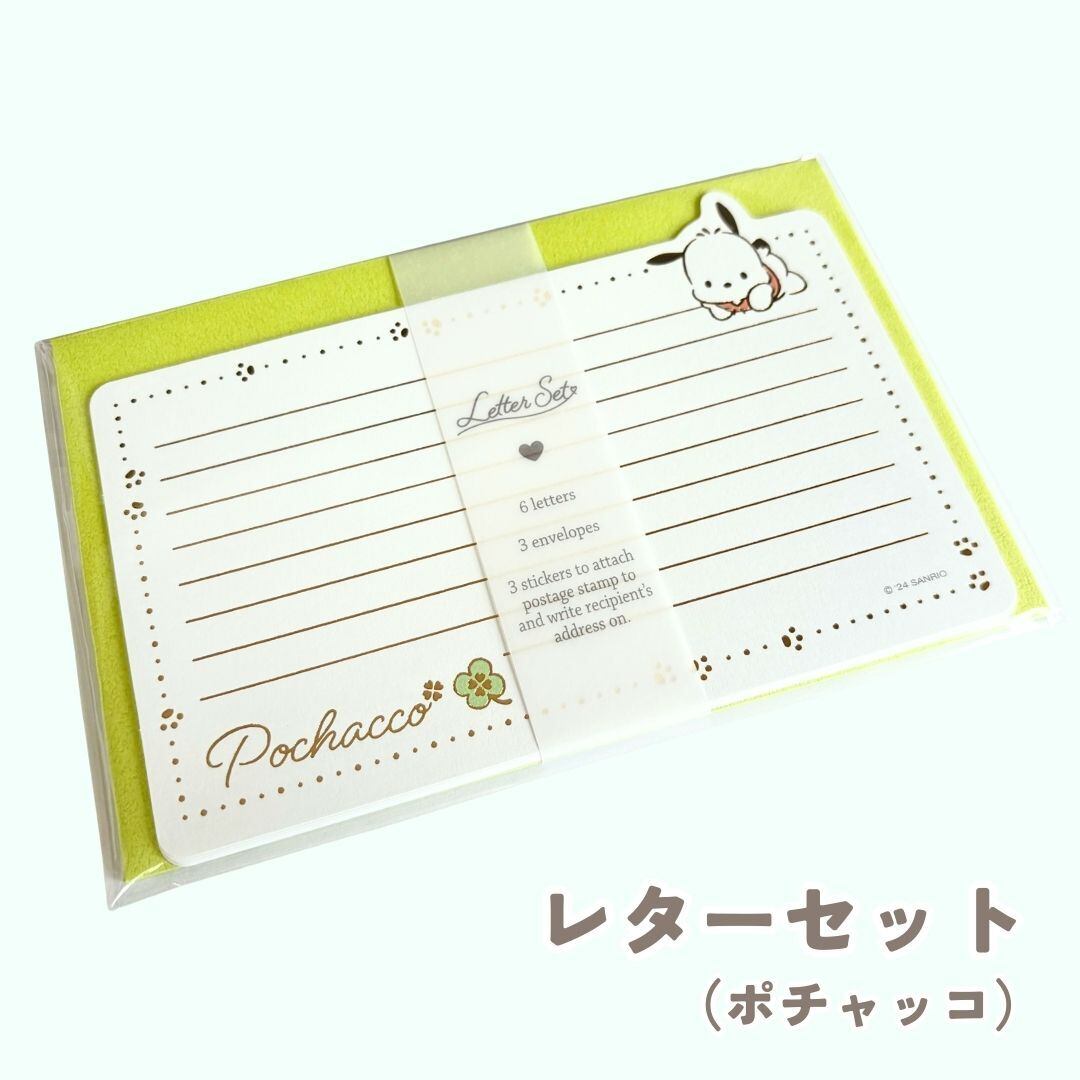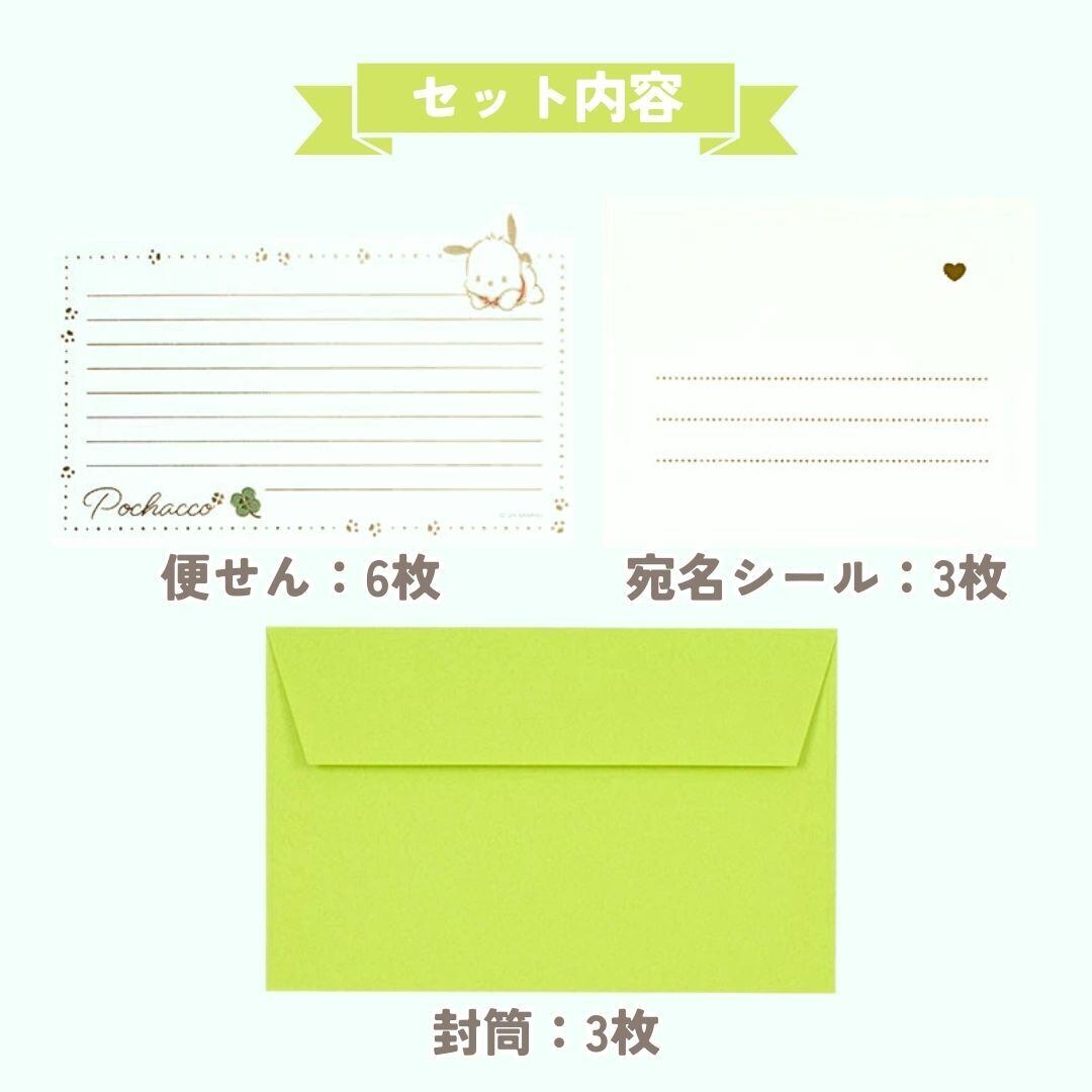 #サンリオ #サンリオキャラクターズ #Sanrio #ポチャッコ #ポチャコ #はぴだんぶい #レターセット #便せん #封筒 #宛名シール #郵便 #文房具 #箔押し #ゴールド #金