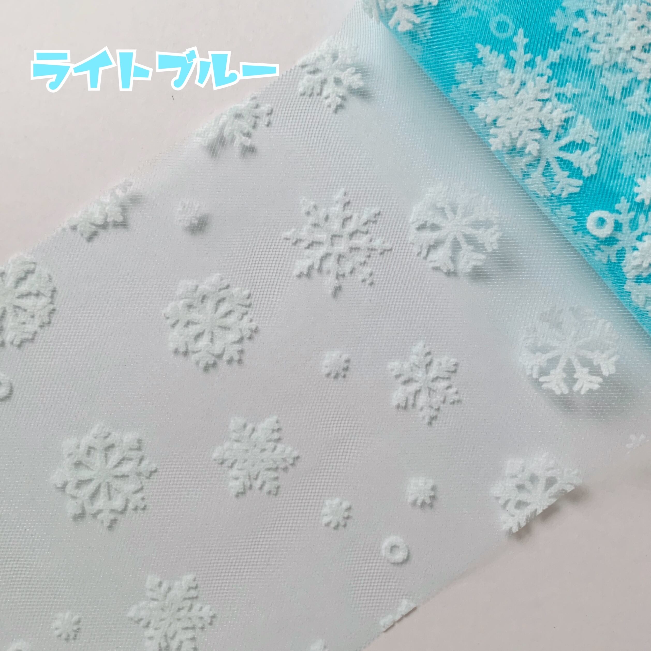雪の結晶柄のフロッキーがついたソフトチュールです。